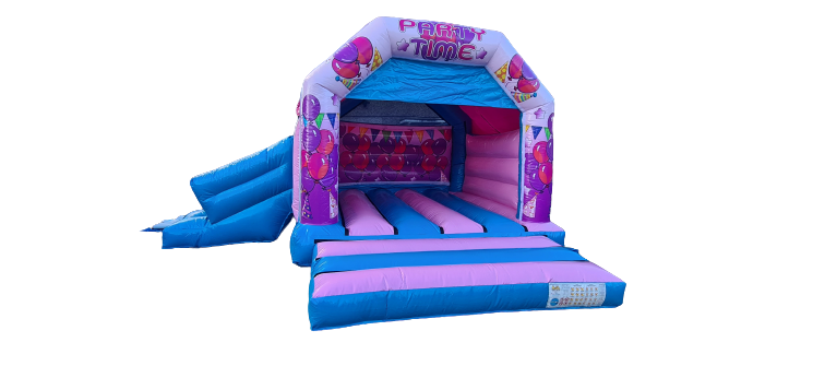 We have a number of Bouncy Castles with slides on the side to choose from, such as our fantastic Disco Bouncy Castle which features a disco light and Bluetooth music system and slide for the children to slide down, This castle can be any Theme you like- LOL, Paw Patrol, Peppa Pig, Marvel, Princess or either of our Disco Bouncy Castle with Slides.