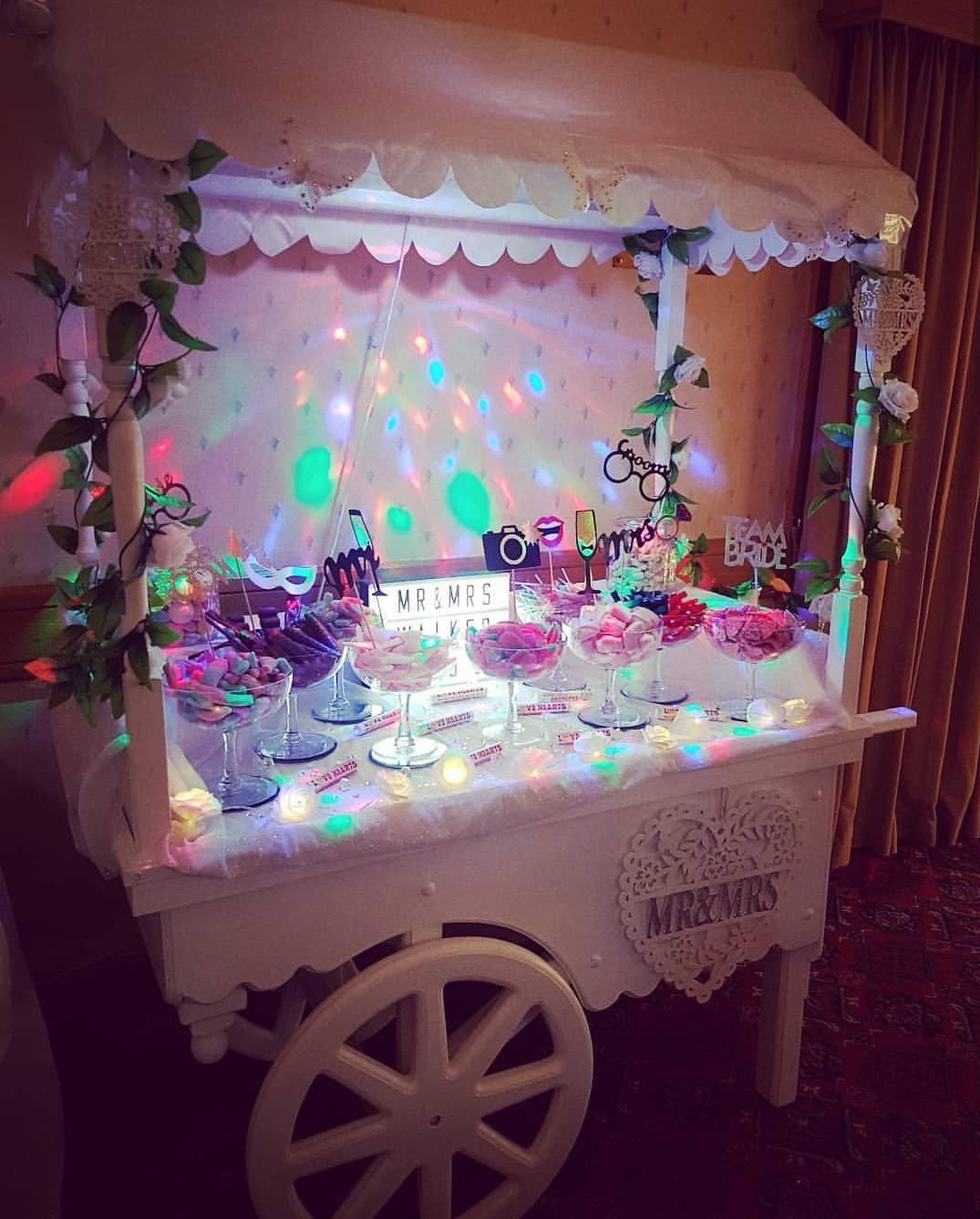 Transform your venue with our stunning Flower Walls and Number Lights. These charming additions create a beautiful backdrop for your special day. Our Sweet Cart Hire can be themed to match your wedding colors, with options for white, silver, or sweets roof, and we provide all the necessary accessories.
