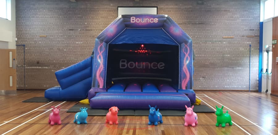 A Disco light and speaker can be added to this Bouncy castle if required.