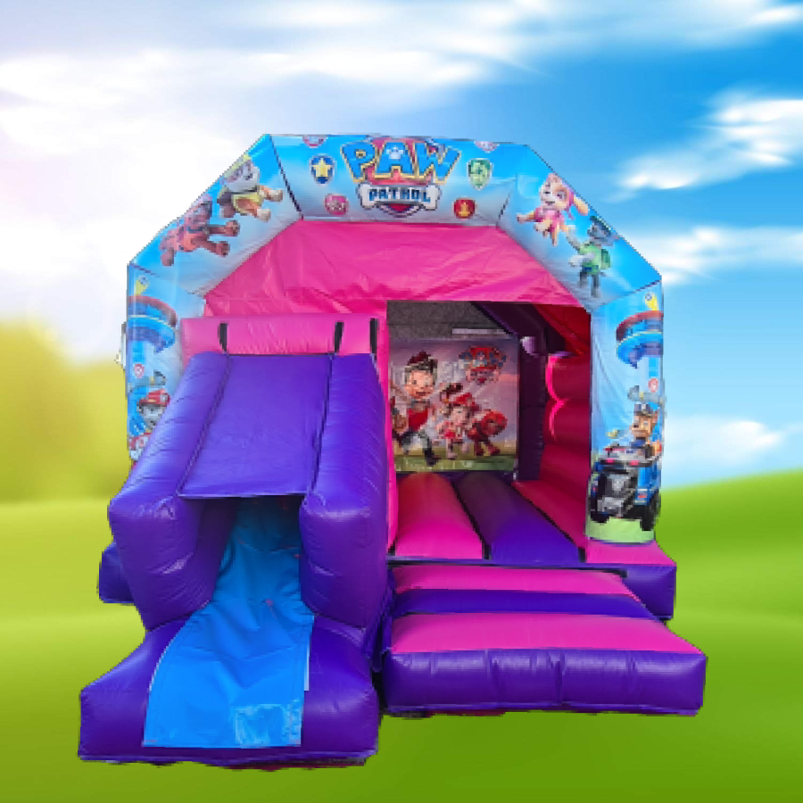 Looking to make your child's party unforgettable? Our Paw Patrol Castle Front Slide (Pink & Purple) is the perfect way to bring joy and excitement to your little one’s special day. Featuring all their favorite Paw Patrol characters, this bouncy castle isn't just a hit with the kids – it’s a centerpiece that will leave a lasting impression. Whether you're planning a birthday bash or a fun-filled family gathering, our themed bouncy castle promises endless fun and entertainment. 🌟