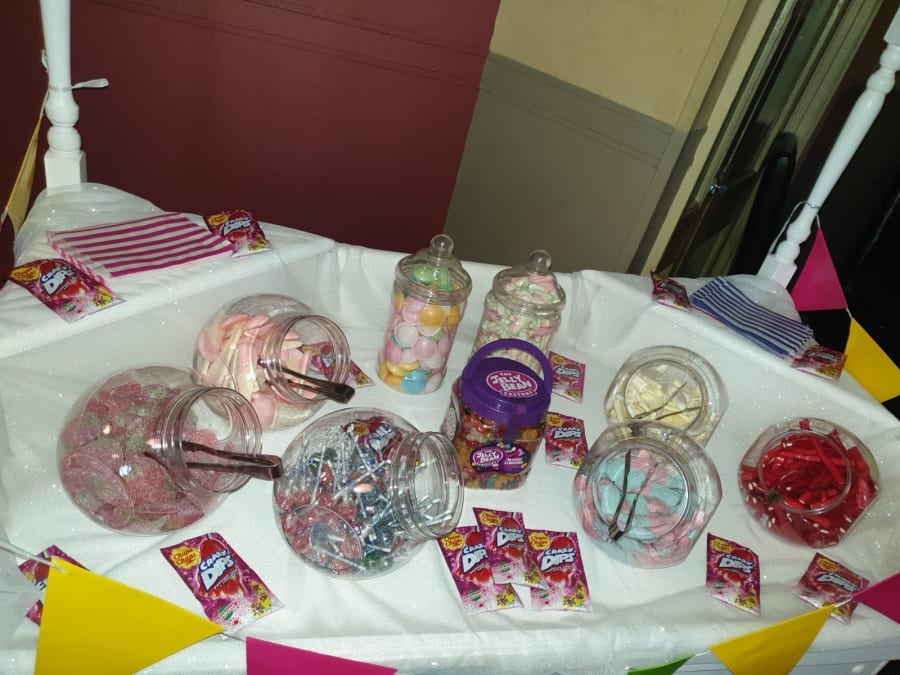 We help with personalising your cart to fit in with your colour scheme or branding. We have several packages available or we can create a package to suit your needs. It has a Disco light that projects onto the cart as seen on the photo. (can be removed if not required) The carts come set up WITH or WITHOUT confectionary and you can choose what sweets you may want want to offer to your guests, you get to keep any left over sweets aswell?.